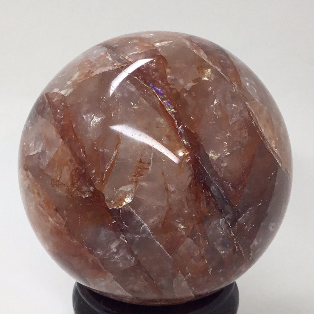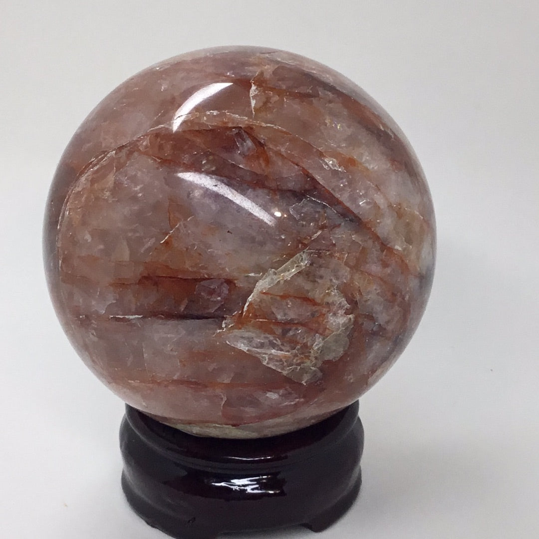 Also known as Hematite Quartz. The fusion of Hematite's balance and stability along with Quartz amplification properties brings a beautiful clarity and sense of groundedness to the beholder. Fire Quartz is a stunning Clear Quartz crystal with inclusions that looks like pink, orange and red flames streaking through the gemstone. These are fascinating to look at and provide a crisp, clear energy that lights or way to discovering and manifesting or dreams!