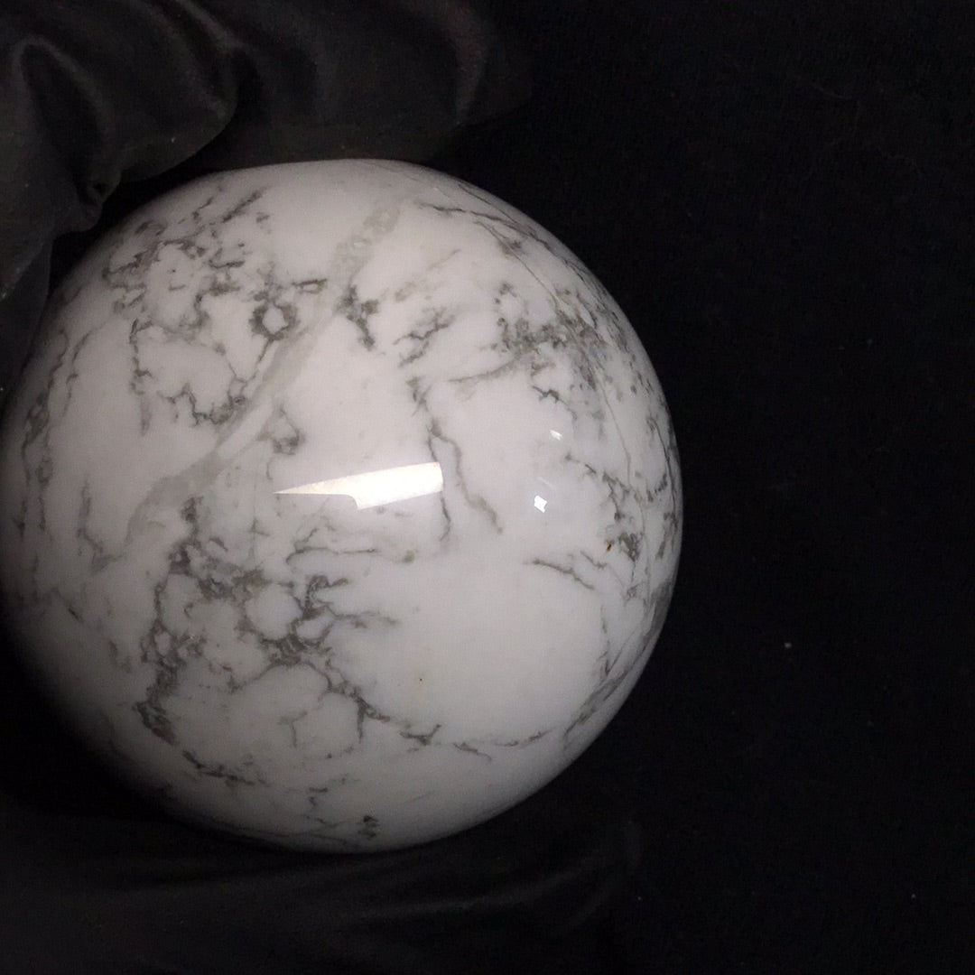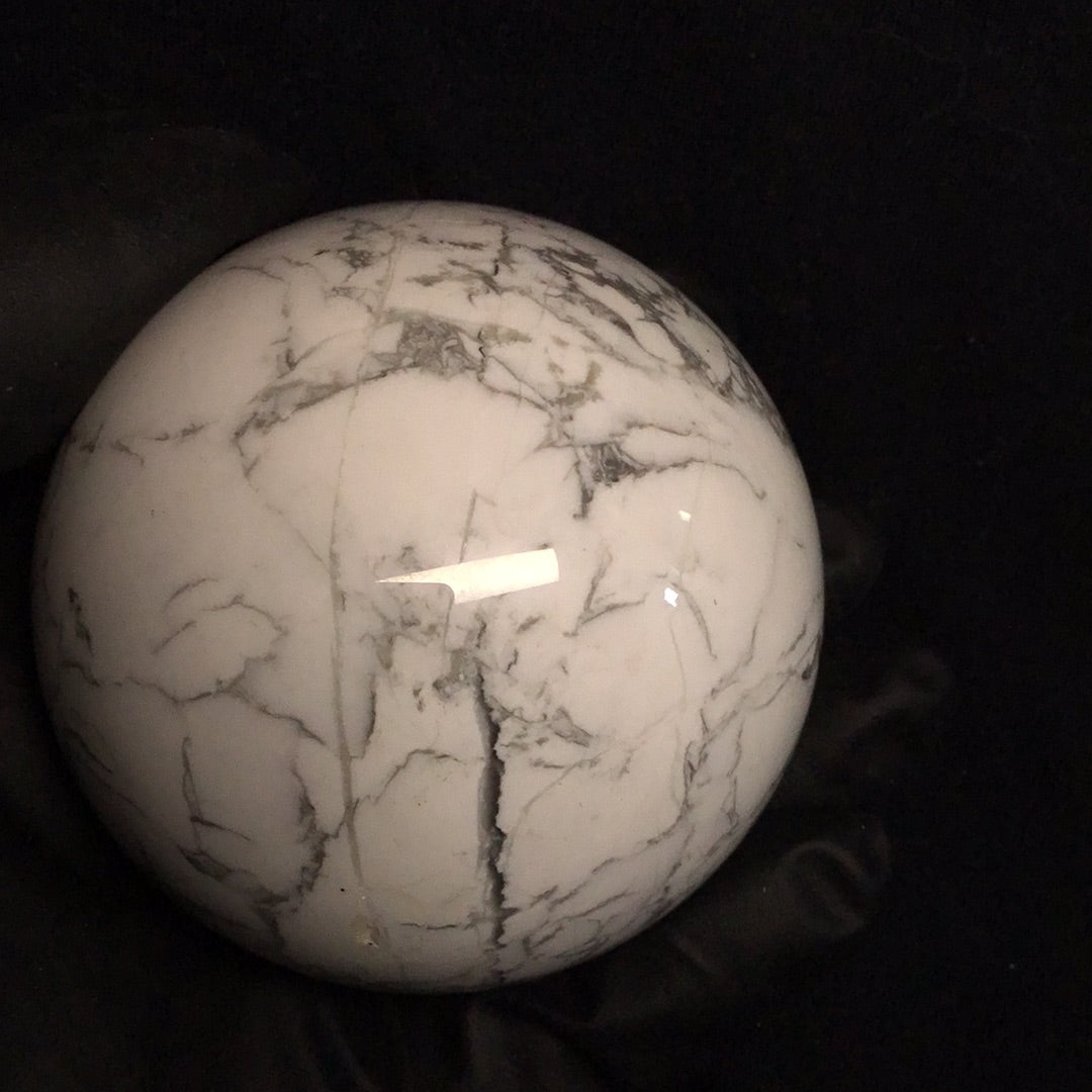 Howlite is a white to grey stone that has erratic streaks that look like cracks. These lines are often brown, grey or black. Howlite is a silicate that can be found in large masses.Howlite is an aid to insomnia, especially when caused by an overactive mind. Formulates ambitions and aids in achieving them.