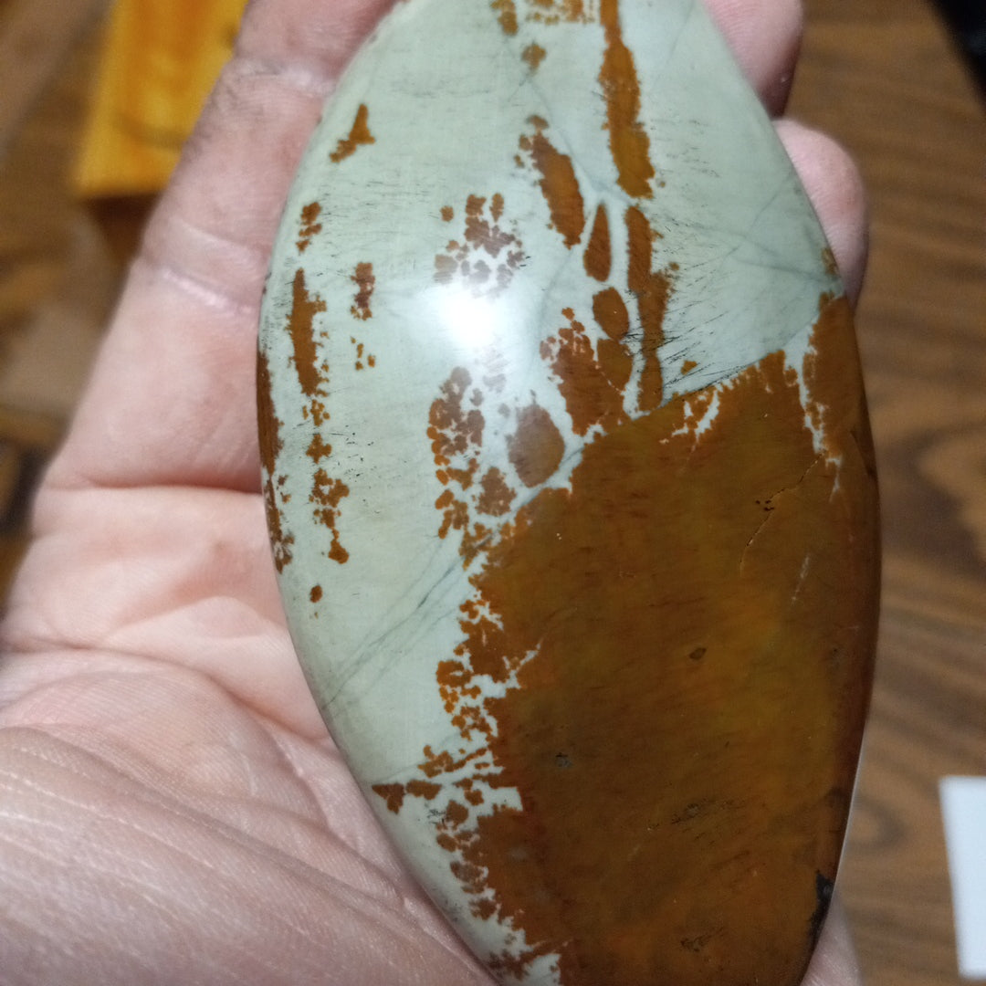Picture Jasper gets its name from the vibrant colors which resemble a picture, or print. The mottled patterns and swirls in Picture Jasper are said to be reminiscent of natural scenes from the earth, especially landscapes.It was given this name because it is composed of bands of microscopic quartz crystals that were tightly packed together in an alternating pattern like tiles on a floor.