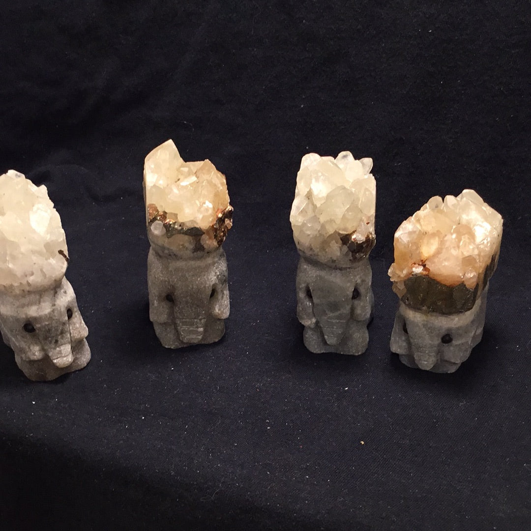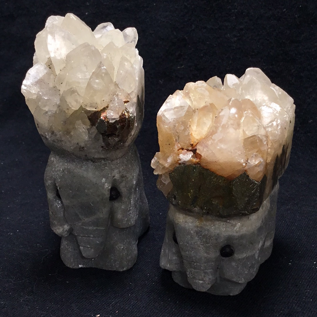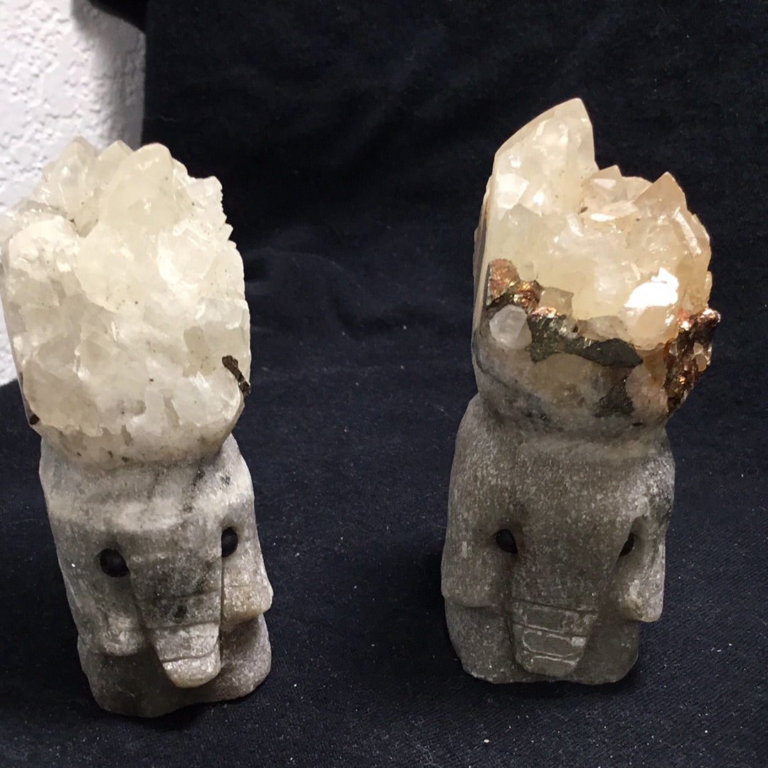 Quartz with pyrite cluster carved into an elephant. Random pick but will pick best one available
