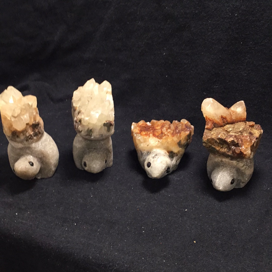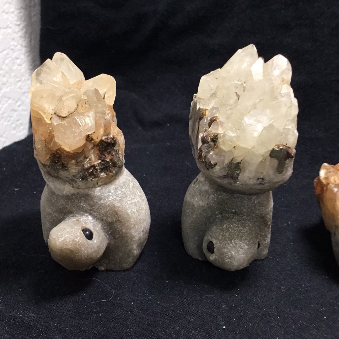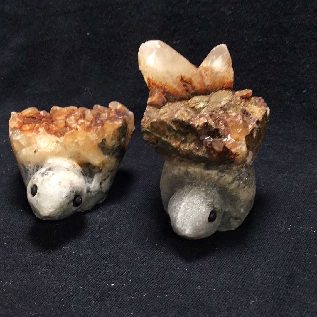 Quartz cluster with pyrite carved into turtle. Random pick but will choose best one available