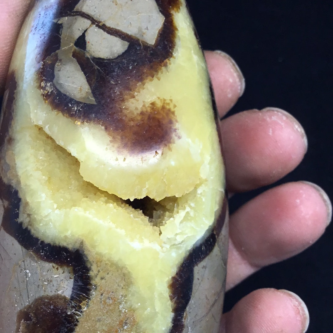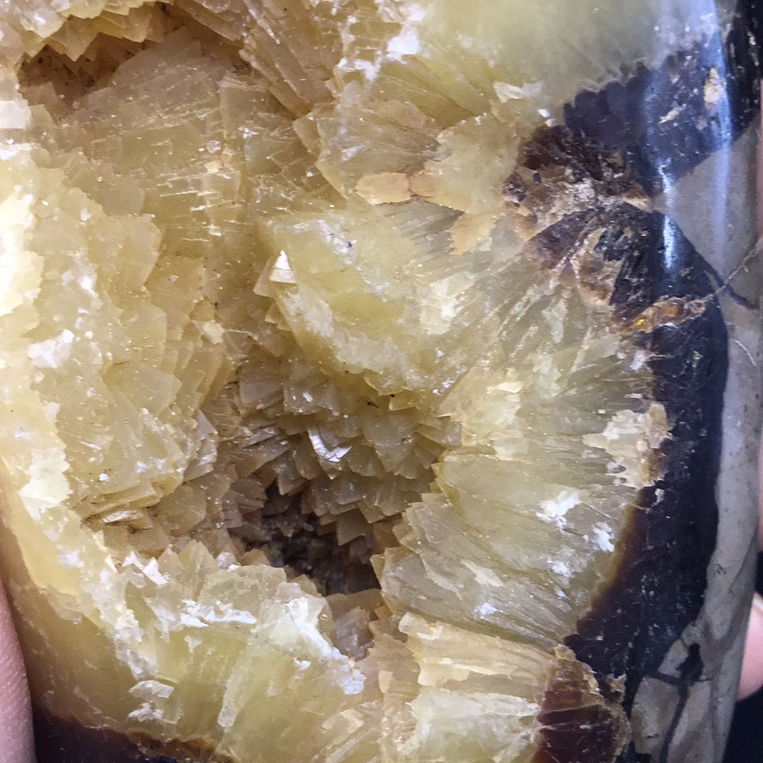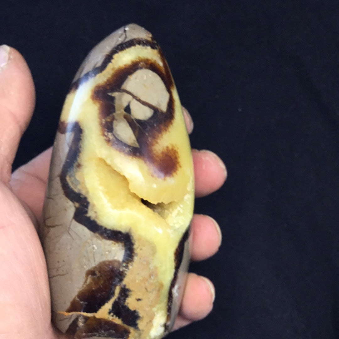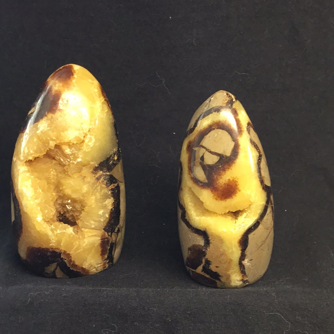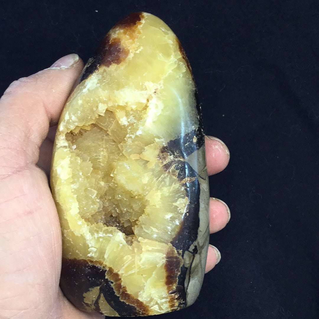 Septarian Nodules are fossilized mud bubbles that formed between 50 and 70 million years ago. They are composed of calcite, aragonite, and are coated in limestone. Septarian Nodules form in air bubbles which create crystal pockets. The combination of minerals create an interesting contrast in texture as well as color making it a sought after stone for home decor.
